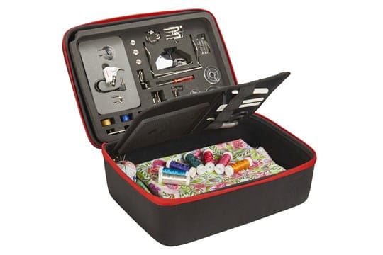 The BERNINA Carrying Case and bags protect sewing machines from dirt and dust and facilitate transport. Extra compartments provide room for accessories.
