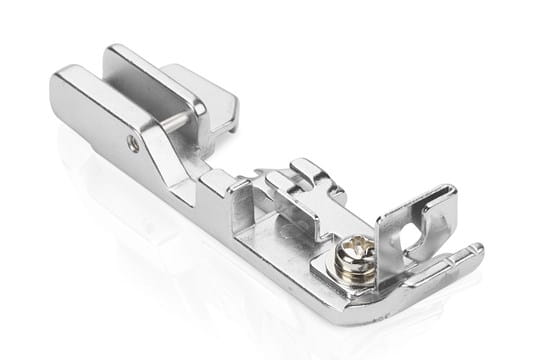 The Cover-/Chainstitch Foot facilitates fabric feed while chain stitching. Perfect for seams along even surfaces or sewing in flat fabric.