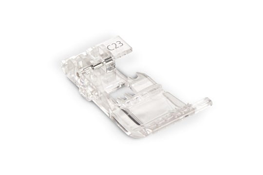 The narrow and short design of the transparent foot allows maneuverable sewing of small rounded shapes and curves.