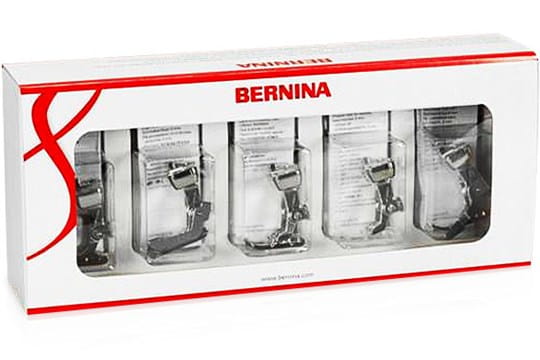 The Presser-foot Set D contains 5 selected presser feet enabling you to sew the most popular stitches and perform the most common sewing tasks.