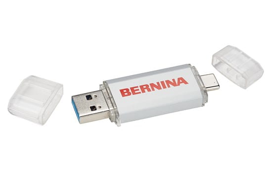 The USB Stick enables fast and uncomplicated data exchange between the embroidery machine and the PC. It stores embroidery designs and data up to 16 GB.