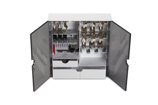 The practical Accessory Box can be used to store all Sewing Accessories, such as Presser Feet, Needles and Bobbins. The Accessory Box is supplied without contents.