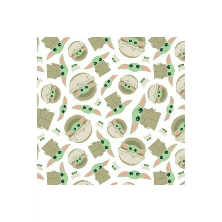 Coussin enfant et grenouille mandalorien blanc Star Wars sur flanelle