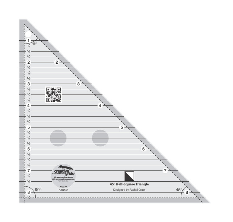 Creative Grids 45 Degree Half-Square Triangle 8-1/2in Quilt Ruler