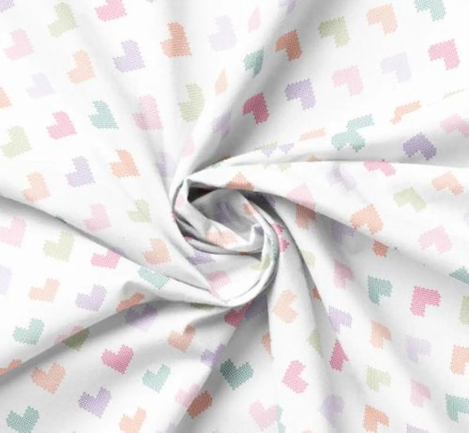 The Daisy and Lilly cotton fabric features soft floral designs with daisies, lilies, hearts, and plaid patterns. Its gentle pastel colors make it ideal for quilting and craft projects with a sweet, dreamy look.