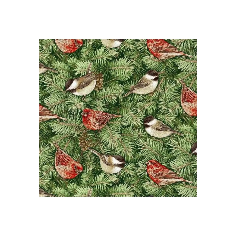 Style : Oiseaux verts botaniques de vacances sur branches de pin 9553-63