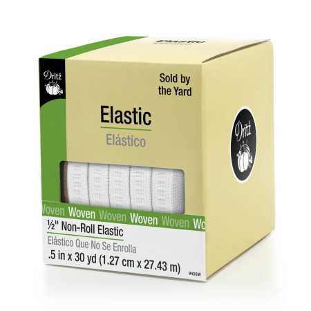 strength to prevent the elastic from curling and rolling. It is used in a variety of applications and is ideal for waistbands in heavier fabric shorts, skirts, pants, etc.Roll and twist resistant elastic. For waistbands. Use with heavier fabrics. Machine washable and dryable in temperatures up to 200 degrees F. Color: White Use: Elastic Size: 1/2in x 30yd Included: One Roll