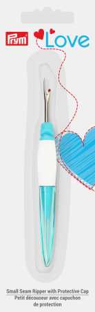 This small size seam ripper is great for on the go projects. Has turquoise handle and protective cap. Color: Turquoise Use: Seam Ripper Includes: One tool