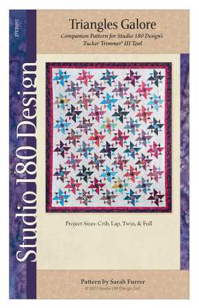 This pattern uses the Triangle Pizazz technique to create a quilt full of spinning triangles in four different sizes - and it's fat quarter friendly! Give this quilt a scrappy look by using many bright fat quarters or pick your favorite coordinating colors for a more subtle appearance. Whichever direction you select, you are bound to end up with a sensational quilt! Printed Paper Patterns Finished Size: Multiple Final Product: Quilt Acrylic Templates Sold Separately Technique Used: Standard Machine Sewing Skill Level: Intermediate