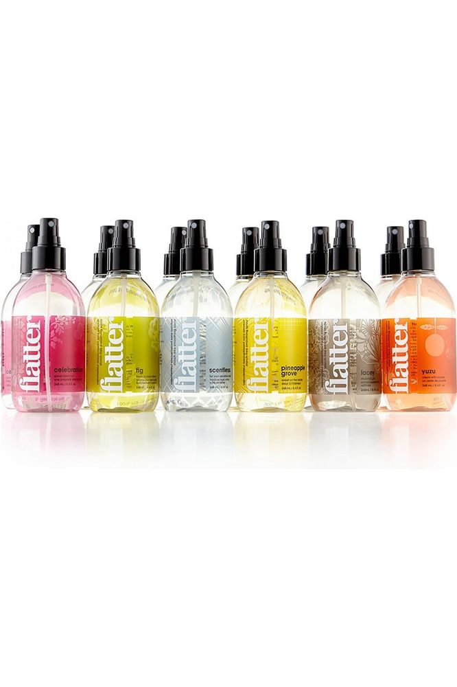 Soak's Flatter Smoothing Spray is starch-free, relaxes wrinkles, and freshens fabric. This spray leaves your fabric feeling sleek, soft, and static-free. Spray your entire garment evenly and iron until desired stiffness is achieved. Flatter can also be used between washes to refreshen fabrics or to reduce and resist wrinkles. Soak Flatter Smoothing Spray is equipped with a soft mist sprayer for even distribution. Made from plant-derived and renewable ingredients, this spray will not flake, clog, or create residue. It is also easy on sensitive skin, biodegradable, phosphate-free, and dye-free. Choose from six scents: Celebration, Fig, Lacey Pineapple Grove, Scentless, and Yuzu.