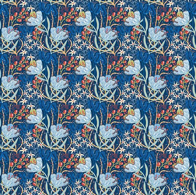 Whimsy-Blue and Red Foliage (Sold By 1/2 Meter)