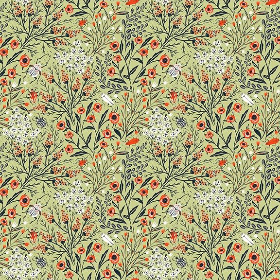 Whimsy - Poppies Green Yardage (Sold By 1/2 Meter)