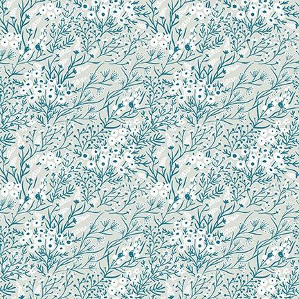 Whimsy- White and Teal Foliage (Sold By 1/2 Meter)