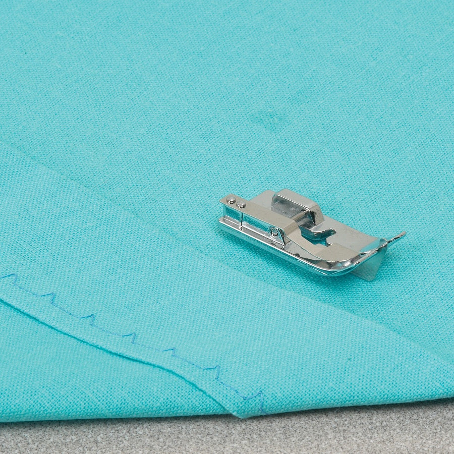 Finish your hems professionally with the easy-to-use Blind Hem foot. This foot creates the same invisible hem seen on ready-made dress pants, skirts, dresses, and even curtains. Simply install the foot, switch to a blind hem stitch, and line up your fold with the white guide bar.