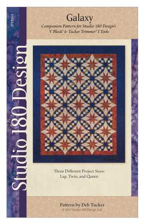 Discover the Galaxy Companion Pattern, designed to enhance your quilting experience with the V Block and Tucker Trimmer I tools from Studio 180 Design. This pattern by Deb Tucker allows you to create stunning star designs with fabric in shades of dark red, medium blue, and light blue, offering three different project sizes: Lap, Twin, and Queen. Perfect for quilters looking to add a touch of celestial beauty to their projects, this pattern is based on 40" of usable fabric width, ensuring minimal cutting errors. Whether you're a seasoned quilter or a beginner, this pattern provides detailed instructions to guide you through the process, making it accessible and enjoyable for all skill levels. Companion Pattern for V Block and Tucker Trimmer I tools Designed by Deb Tucker Features star designs in dark red, medium blue, and light blue Three project sizes: Lap (54" x 67.5"), Twin (72" x 85.5"), Queen (84" x 100.5") Based on 40" of usable fabric width Suitable for all quilting skill levels