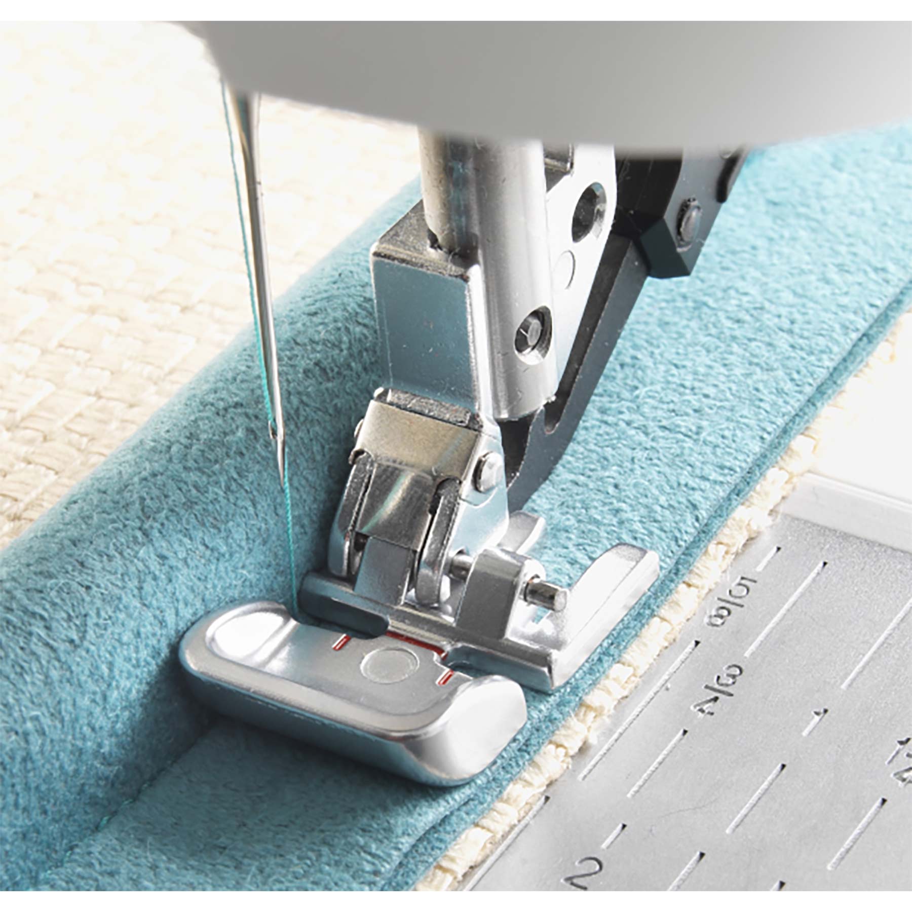 The Grand Piping Foot is perfect for inserting thick home dec piping into seams or wherever you’d like to add a finishing touch! The Grand Piping Foot is used to cover large cords with fabric for specialty piping and insert the piping into seams or edges for a tailored finish. The trim is sewn between the two layers of fabric in one step. You can also create your own piping for a custom finish. This foot can be snapped on to the right or the left of the needle which makes it possible to both create and sew the piping into the seam and to beautifully topstitch along the piping.