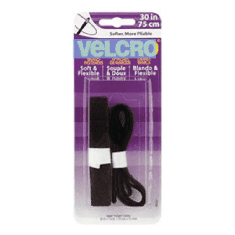 Soft to the touch and pliable these fasteners answer the demand for a softer touch VELCO (R) Brand closure. Ideal for infant clothing lightweight fabrics costumes and more. Sew-on. Fasteners can be washed or dry cleaned. Size 5/8inx30in. Black.